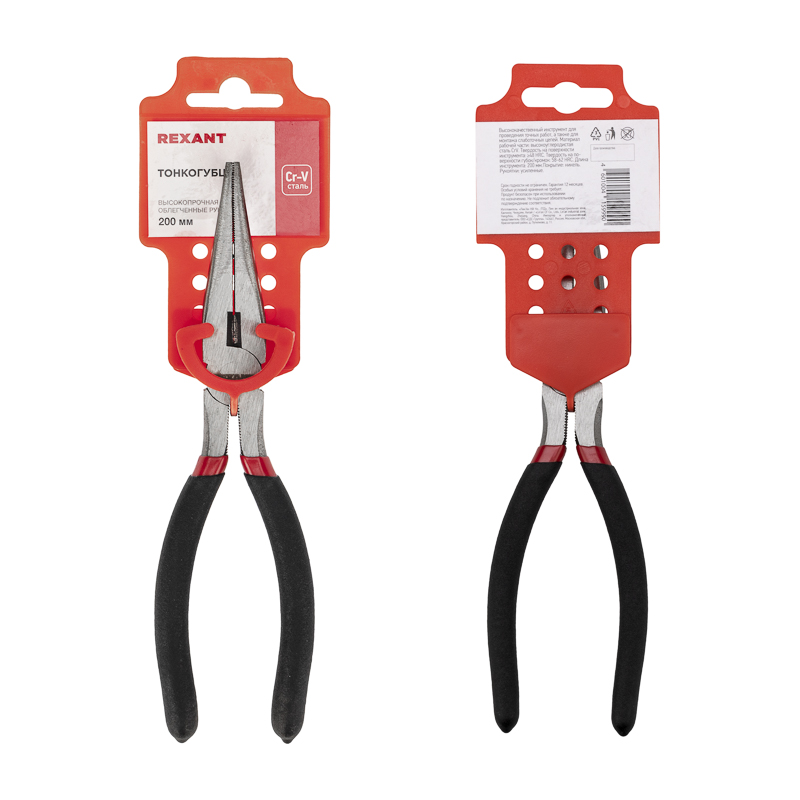 Тонкогубцы 200мм, обливные рукоятки REXANT