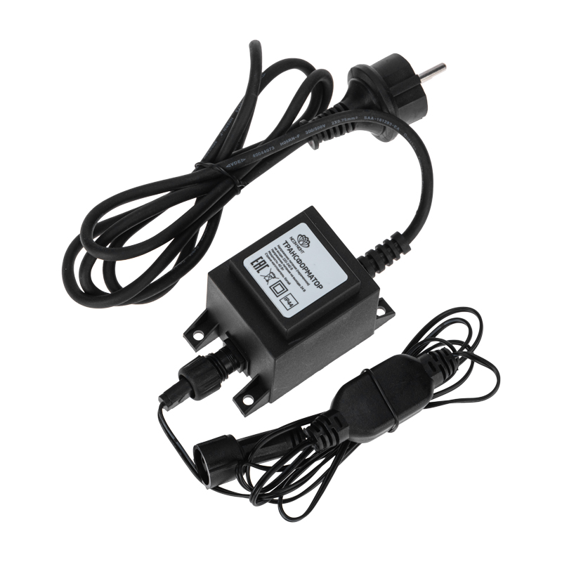 Длина шнура питания: от трансформатора до вилки 100 см, от трансформатора до разъема подключения 60 см.