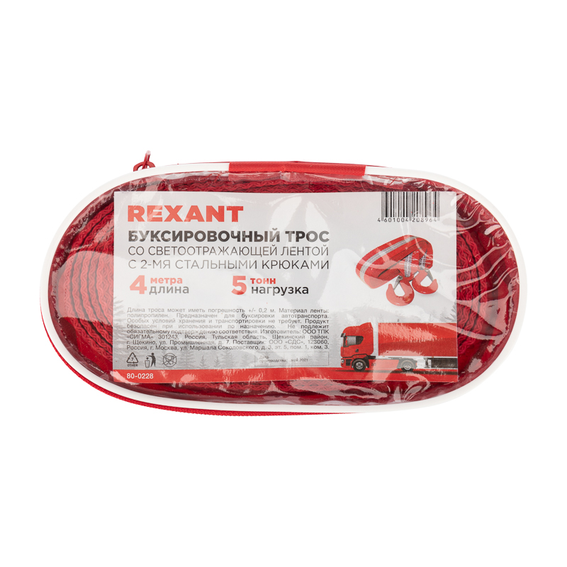 Светоотражающая лента, нанесенная на трос, позволяет повысить видимость буксируемого транспортного средства в условиях низкой освещенности или при передвижении в темное время суток.