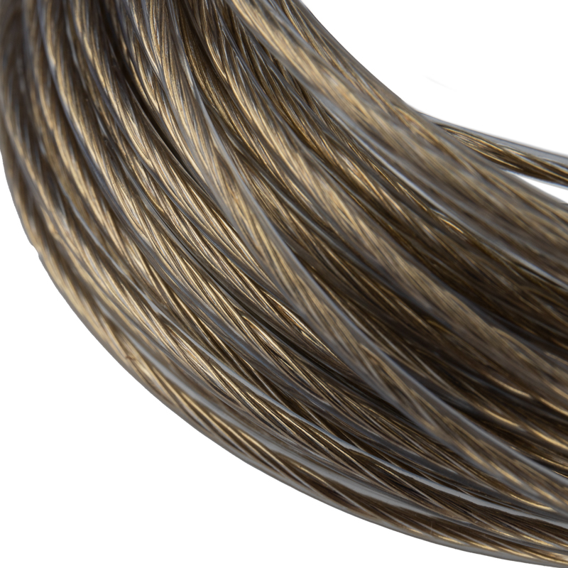 Стальной трос свивается из высокоуглеродистой латунированной стальной проволоки и покрывается ПВХ, что обеспечивает устойчивость к воздействию влаги и пресной воды. ПВХ покрытие является экологически чистым и абсолютно безопасным материалом для человека и животных.