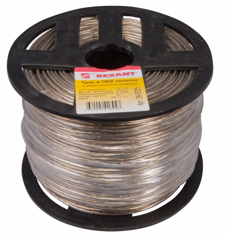 Стальной трос свивается из высокоуглеродистой латунированной стальной проволоки и покрывается ПВХ, что обеспечивает устойчивость к воздействию влаги и пресной воды. ПВХ покрытие является экологически чистым и абсолютно безопасным материалом для человека и животных.