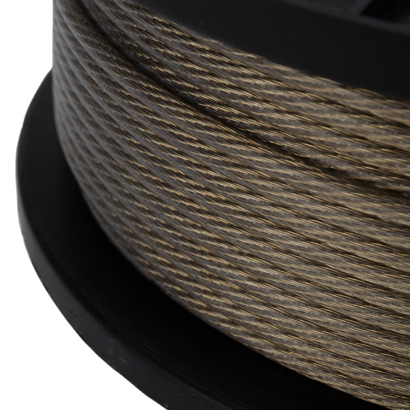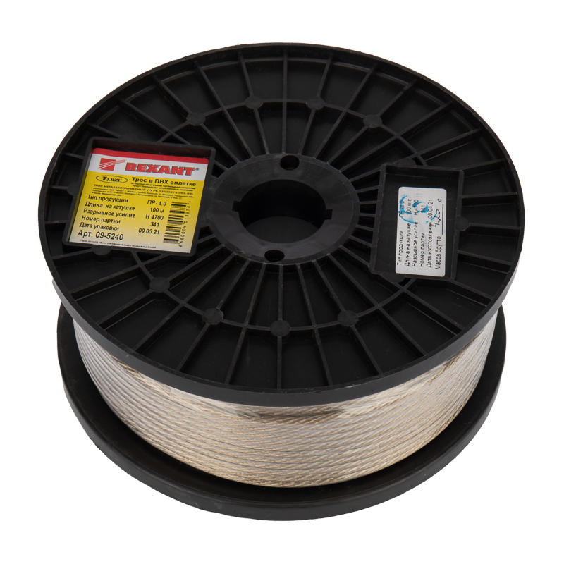 Стальной трос свивается из высокоуглеродистой латунированной стальной проволоки и покрывается ПВХ, что обеспечивает устойчивость к воздействию влаги и пресной воды. ПВХ покрытие является экологически чистым и абсолютно безопасным материалом для человека и животных.
