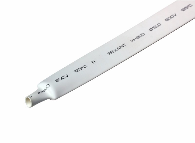 Трубка термоусаживаемая ТУТ нг 12,0/6,0мм, белая, упаковка 50 шт. по 1м REXANT
