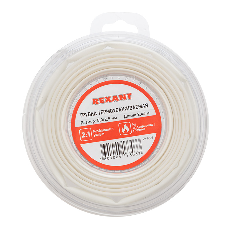 Трубка термоусаживаемая ТУТ нг 5,0/2,5мм, белая, ролик 2,44м REXANT