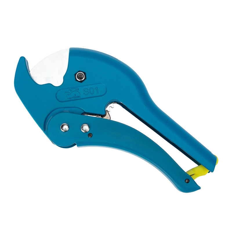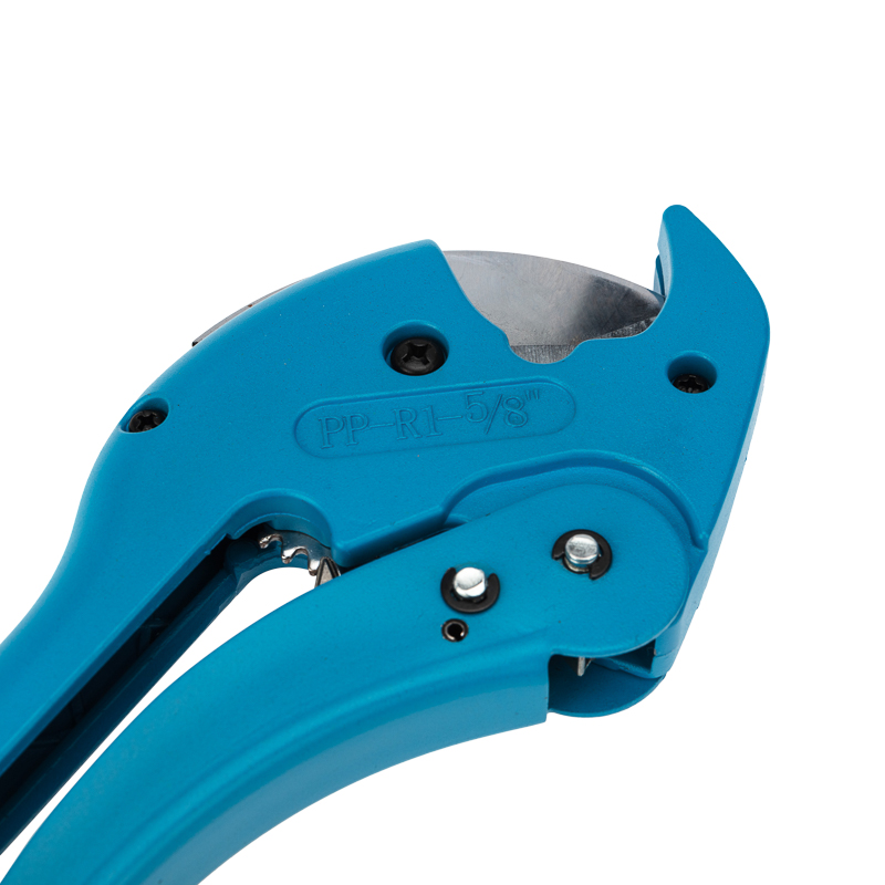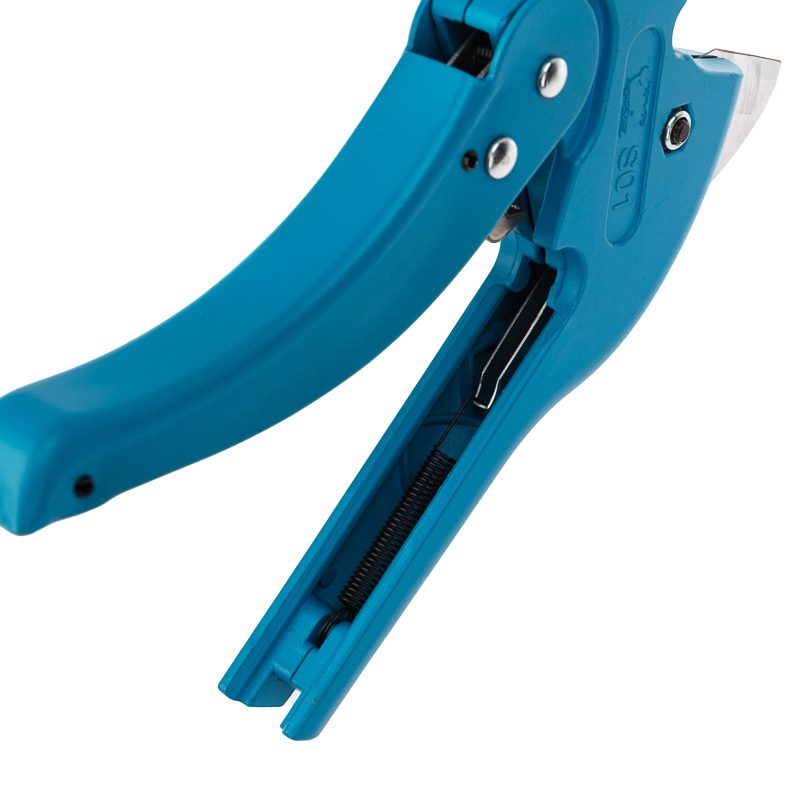Оснащен храповым механизмом для уменьшения усилий сжатия рукояток. Пружинный механизм взвода ручек трубореза в рабочее положение обеспечивает быстроту и удобство работы.