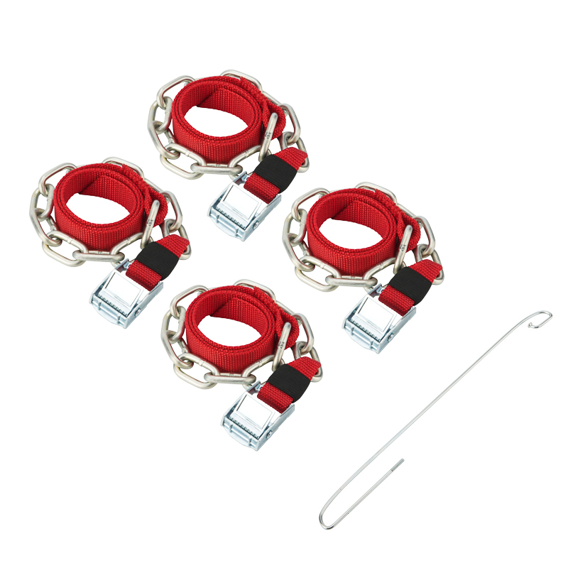 Цепи (браслеты) противоскольжения на колеса автомобиля - незаменимый аксессуар для всех водителей, неравнодушных к активному отдыху (охота, рыбалка, туризм).  Данные цепи (браслеты) станут отличными помощниками во время поездок в деревню или на дачу. Прочные и долговечные стальные цепи (браслеты) противоскольжения обеспечивают повышение проходимости автомобиля при движении по труднопроходимым участкам пути, эффективны в снегу, грязи, глине, льду, в горах и на бездорожье. Компактные размеры изделия не занимают много места и позволяют возить его с собой в багажном отсеке на постоянной основе. Подходят для машин на любом приводе: переднем, заднем или полном, могут быть установлены на все виды дисков: штампованные, литые или кованные. Большим преимуществом является возможность применения только по мере необходимости. Устанавливать цепи (браслеты) можно даже тогда, когда автомобиль уже застрял. Монтаж занимает пару минут и не требует специальных навыков. Браслеты изготовлены из надежных и качественных материалов. Стальные цепи дополнительно оцинкованы для защиты от негативного воздействия окружающей среды. Автоматизированная сварка швов повышает прочность. Изделие не рекомендуется применять на твердом абразивном покрытии: асфальт, бетон, каменистый грунт.