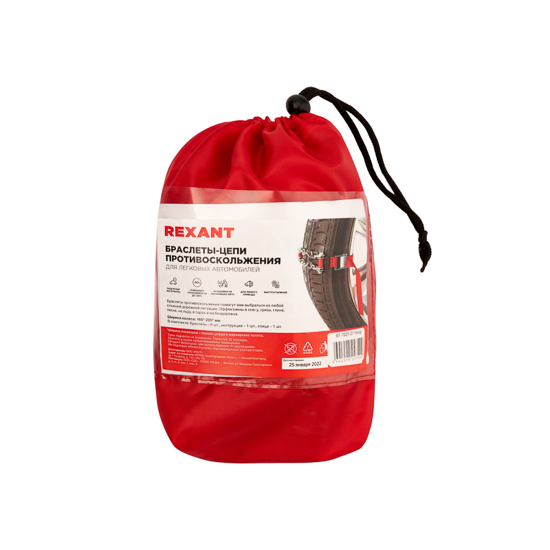 Цепи (браслеты) противоскольжения для легковых автомобилей (колеса 165-205 мм), 6 шт. REXANT