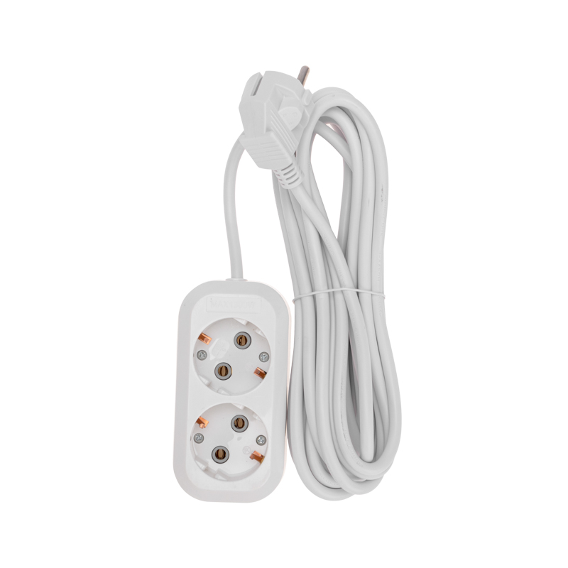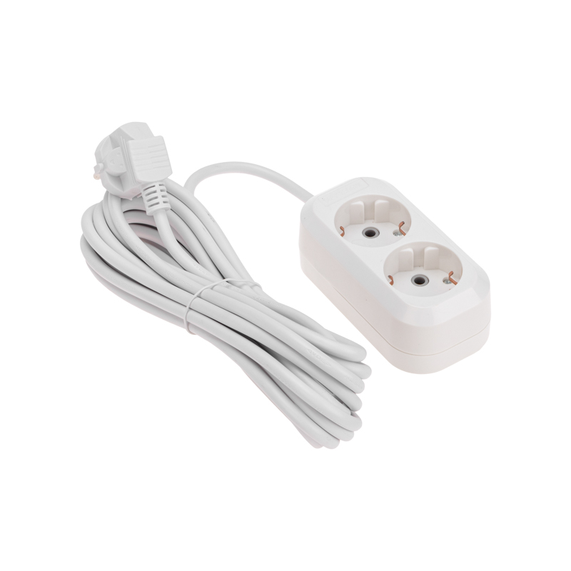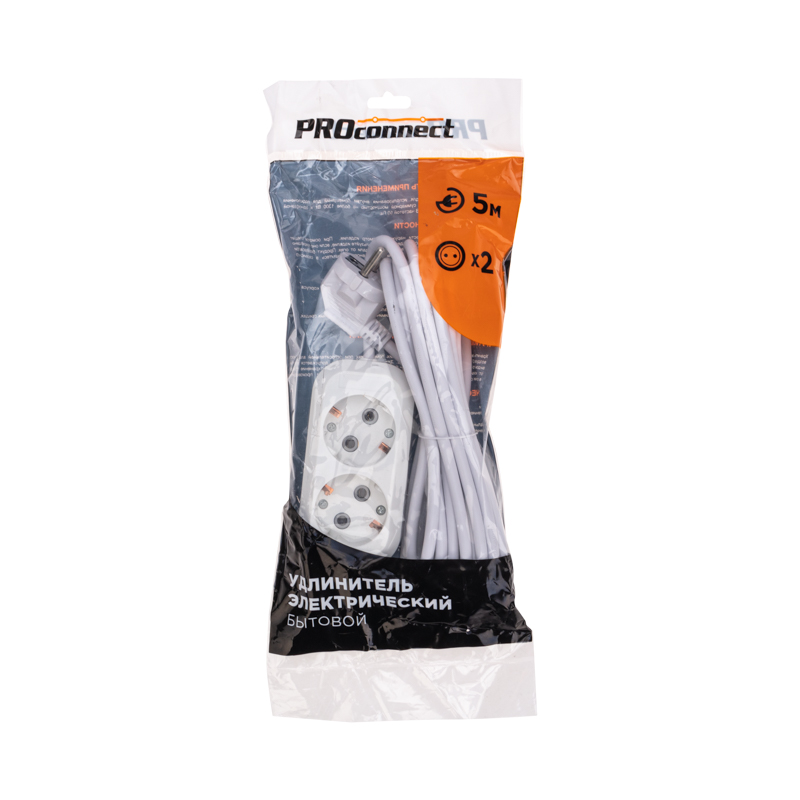 Удлинитель 2 гнезда, 5м, 3х0,75мм², с/з, белый PROconnect