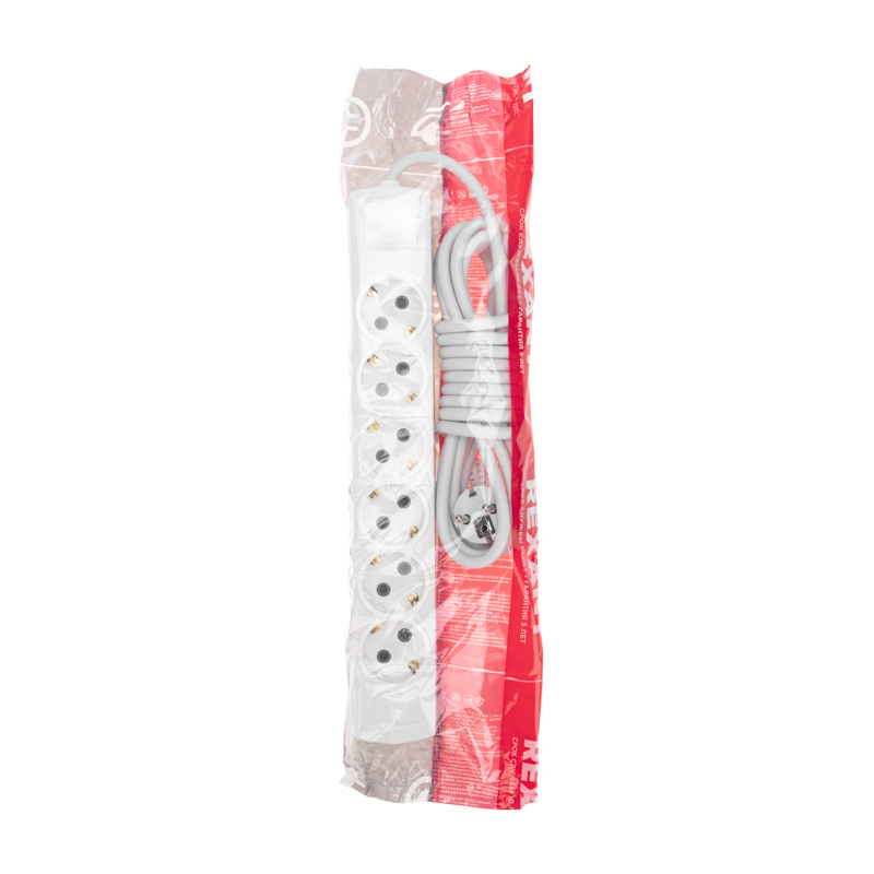 Удлинитель PREMIUM 6 гнезд, 5м, 3х1,5мм², с/з, белый REXANT