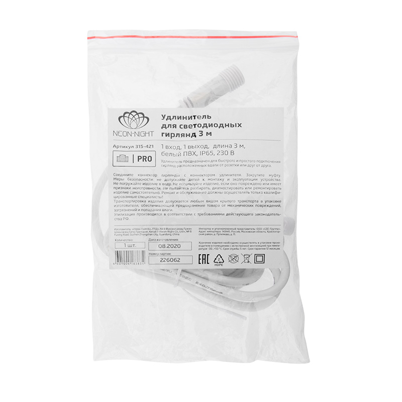Удлинитель предназначен для быстрого и простого подключения гирлянд, расположенных вдали от розетки или друг от друга, а в сочетании с разветвителями позволяет всю декоративную иллюминацию аккуратно и быстро подключить к одной розетке. Вам больше не понадобится переплачивать за сетевые удлинители огромной длины, наблюдать страшную картину с огромным количеством запутанных проводов, и это не будет омрачать столь прекрасное настроение. Подходит для гирлянд с напряжением 24В и 230В.