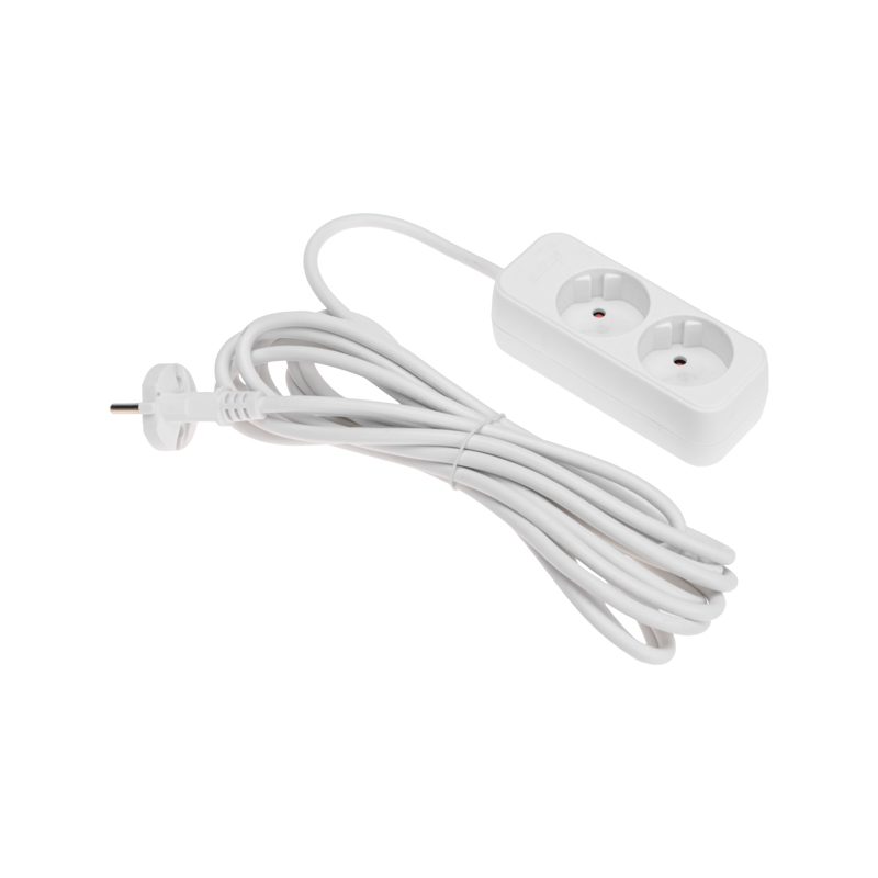 Мощность – 2200Вт. Сечение провода – 2х1,0мм². Тип вилки – прямая. Цвет удлинителя – белый.
