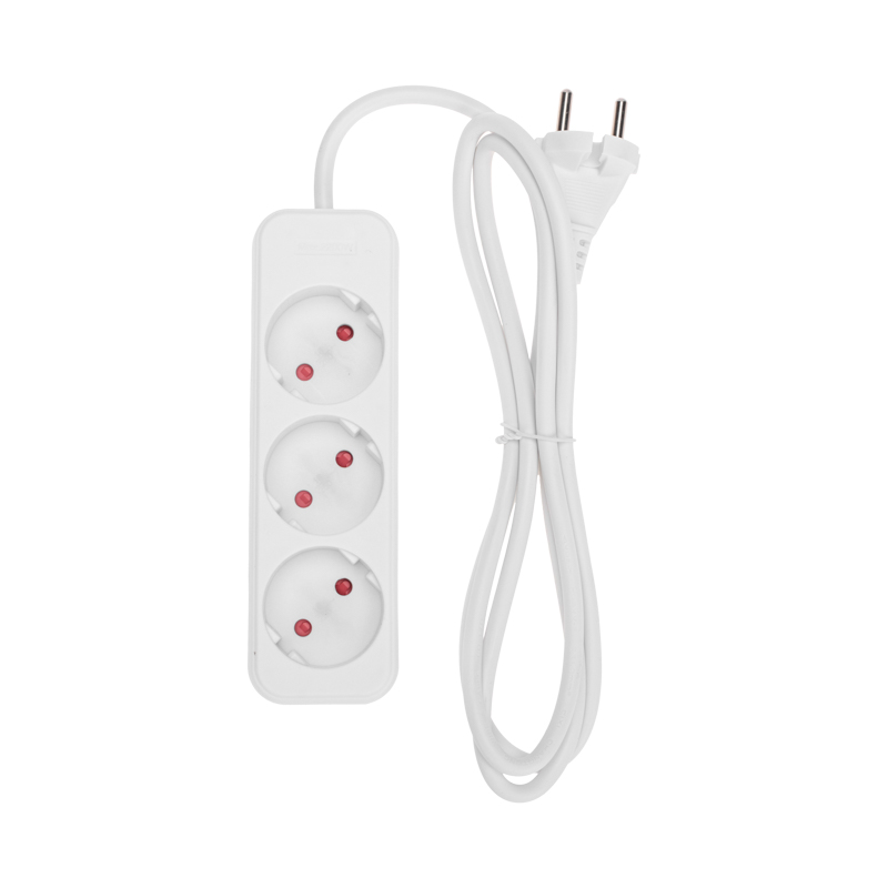 Мощность – 2200Вт. Сечение провода – 2х1,0мм². Тип вилки – прямая. Цвет удлинителя – белый.