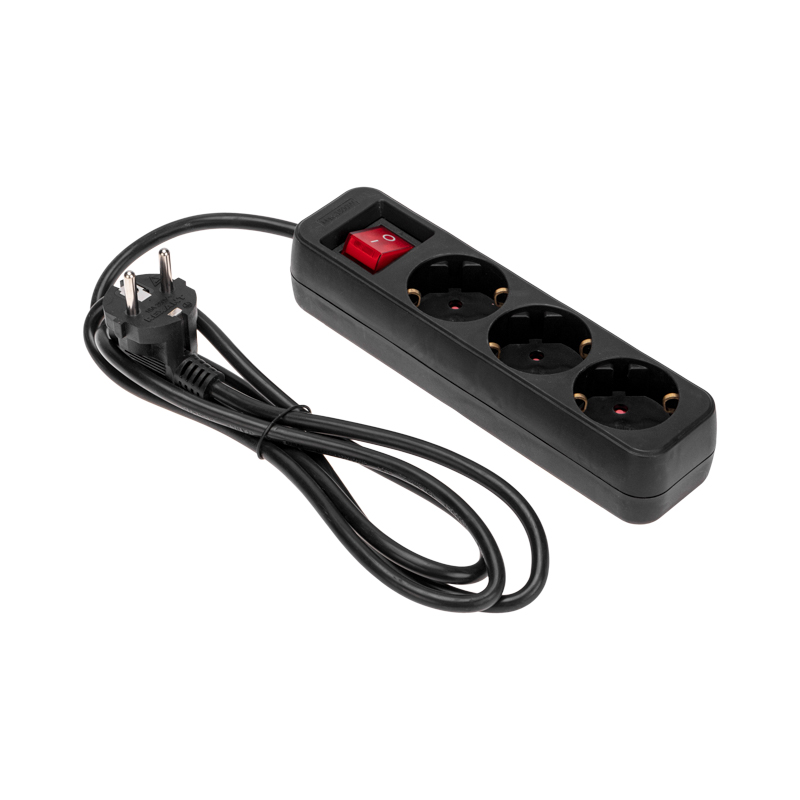 Удлинитель STANDARD 3 гнезда, 1,5м, 3х1,0мм², с/з, с выключателем, черный REXANT