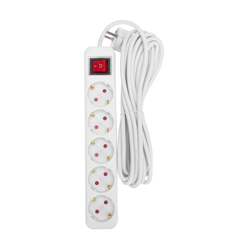 Наличие 5 гнезд позволяет одновременно подключить несколько электроприборов. Каждое гнездо имеет заземление, что гарантирует безопасность при использовании.