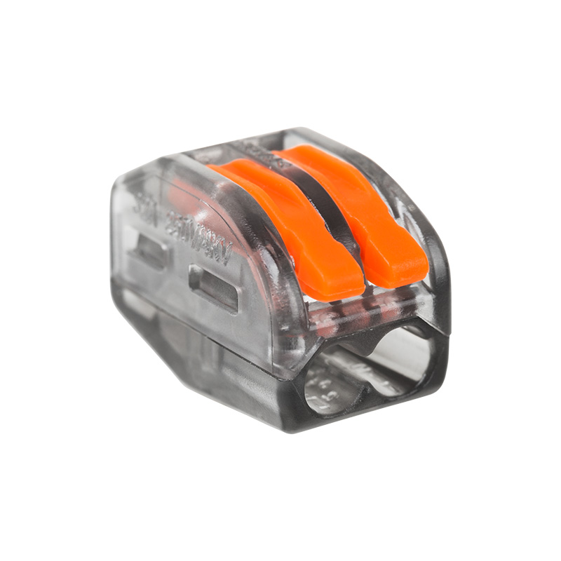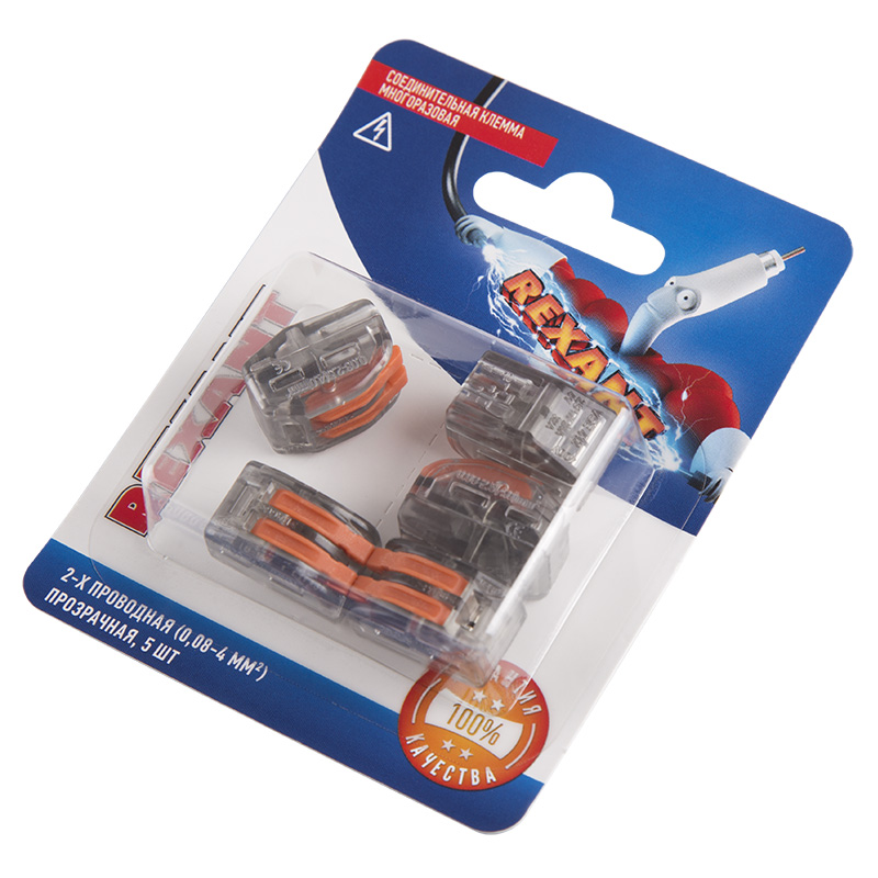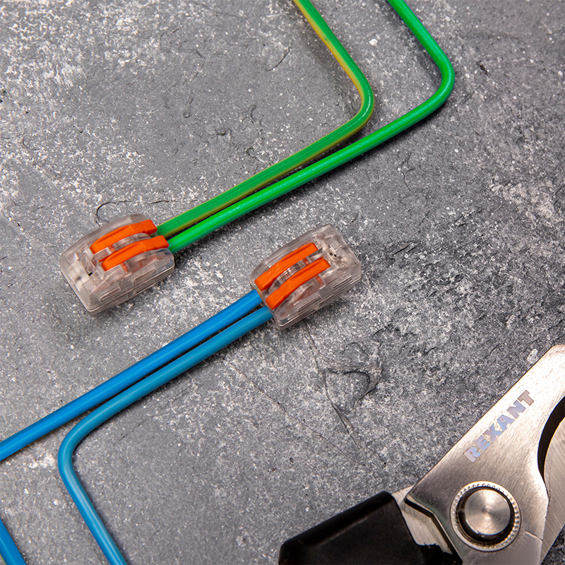 Соединительная многоразовая клемма на 2 проводника с плоско-пружинным зажимом предназначена для подсоединения медных одножильных и многожильных проводников тонкого сечения. Клемма изготовлена из полиамида 66, имеет 2 контакта, цвет корпуса прозрачный, напряжение 400 В.