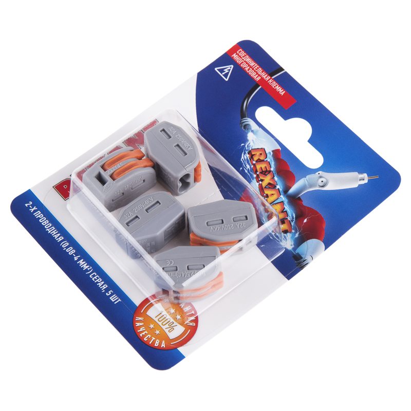 Универсальная клемма СМК 222-412, 2-проводная серая 0,08-2,5/4 мм² (блистер 5 шт./уп.) REXANT