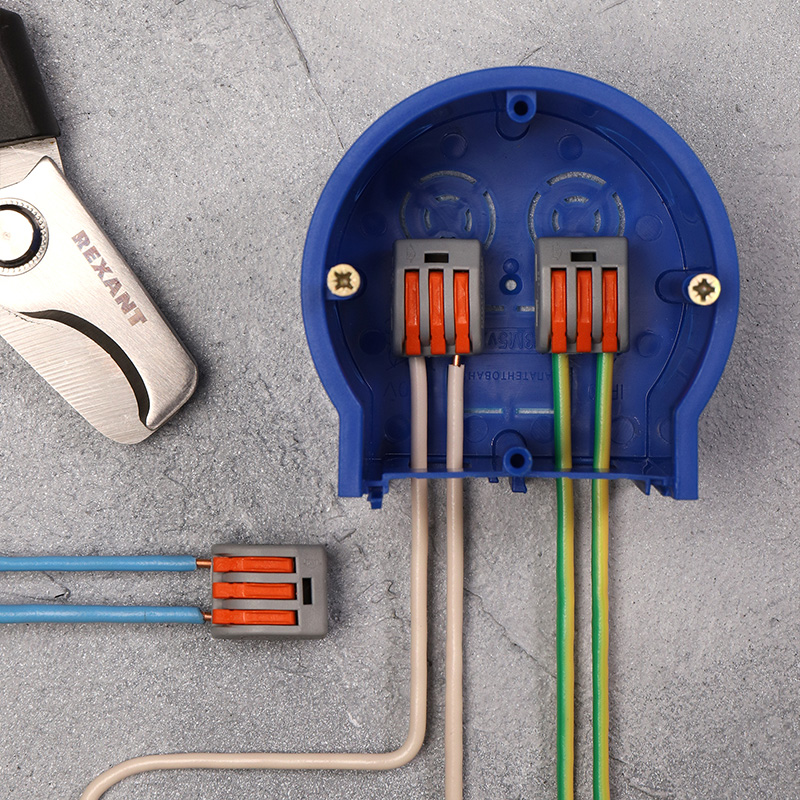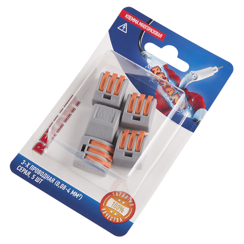 Универсальная клемма СМК 222-413, 3-проводная серая 0,08-2,5/4 мм² (блистер 5 шт./уп.) REXANT