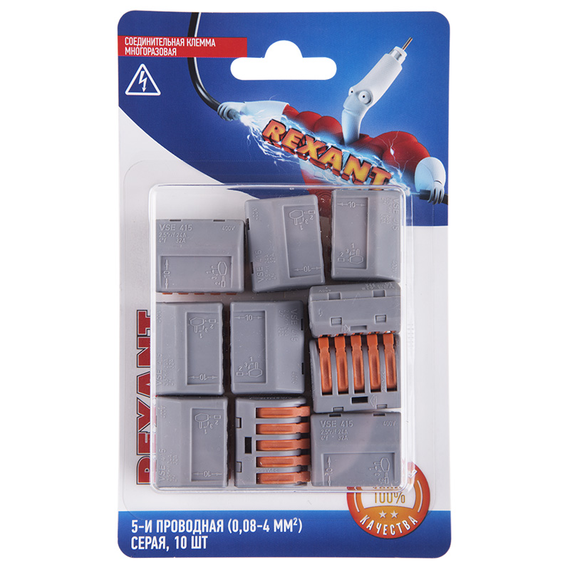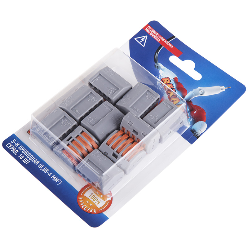 Универсальная клемма СМК 222-415, 5-проводная серая 0,08-2,5/4 мм² (блистер 10 шт./уп.) REXANT