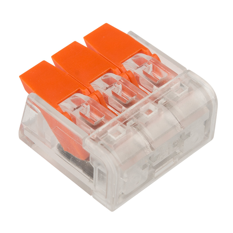Многоразовая 3-проводная клемма REXANT — это один из самых быстрых, надежных и удобных способов монтажа проводников при небольшой потребности в пространстве в точке коммутации, в условиях нехватки и ограничения пространства. Конструкция на 30 % компактнее привычных рычажковых клемм, прозрачный корпус позволяет контролировать контакт проводников с контактными пластинами, правильность зачистки проводников. Широкие плоские рычаги с меньшим прижимным усилием более удобны и надежны в работе, наличие двух гнезд для тестовых щупов с обеих сторон клеммы облегчает доступ и контроль соединения и питания.