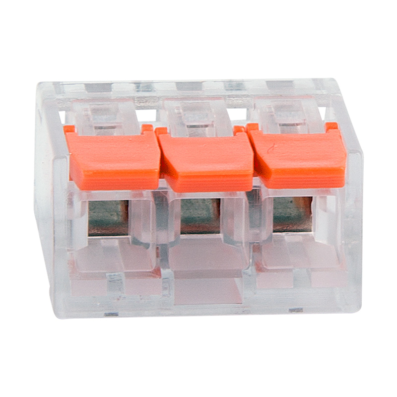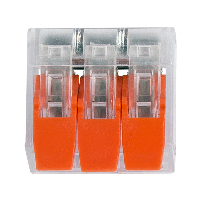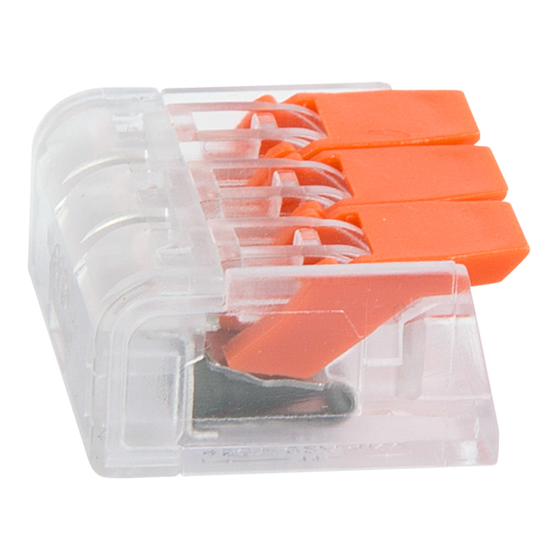 Многоразовая 3-проводная клемма REXANT это один из самых быстрых, надежных и удобных способов монтажа проводников при небольшой потребности в пространстве в точке коммутации, в условиях нехватки и ограничения пространства. Конструкция на 30 % компактнее привычных рычажковых клемм, прозрачный корпус позволяет контролировать контакт проводников с контактными пластинами, правильность зачистки проводников. Широкие плоские рычаги с меньшим прижимным усилием более удобны и надежны в работе, наличие двух гнезд для тестовых щупов с обеих сторон клеммы облегчает доступ и контроль соединения и питания.