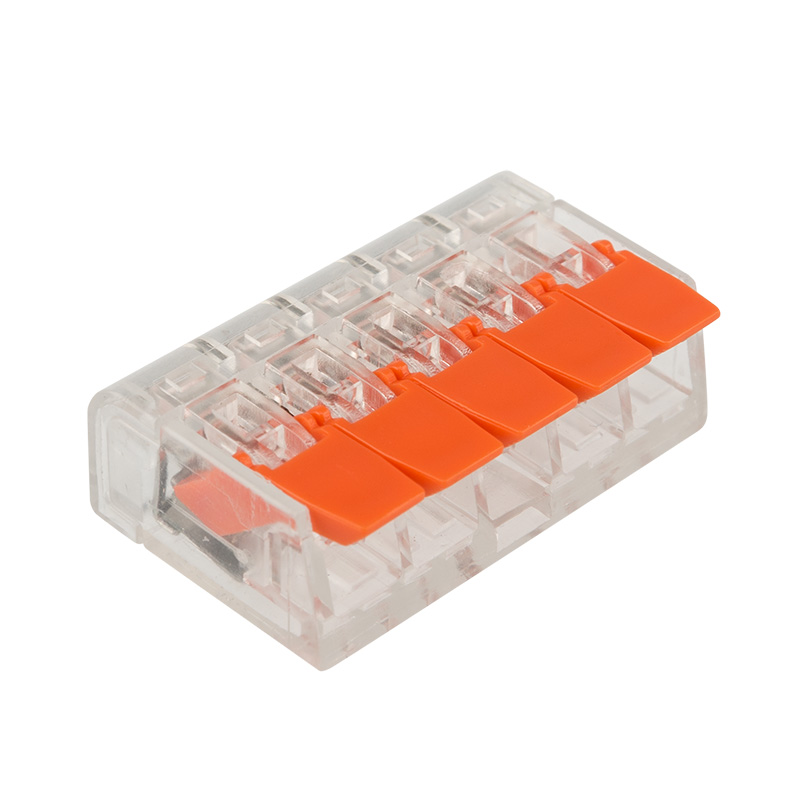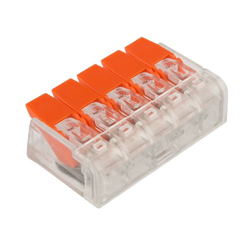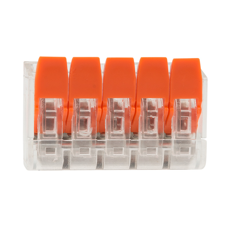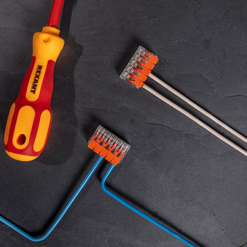 Многоразовая 5-проводная клемма REXANT — это один из самых быстрых, надежных и удобных способов монтажа проводников при небольшой потребности в пространстве в точке коммутации, в условиях нехватки и ограничения пространства. Конструкция на 30 % компактнее привычных рычажковых клемм, прозрачный корпус позволяет контролировать контакт проводников с контактными пластинами, правильность зачистки проводников. Широкие плоские рычаги с меньшим прижимным усилием более удобны и надежны в работе, наличие двух гнезд для тестовых щупов с обеих сторон клеммы облегчает доступ и контроль соединения и питания.