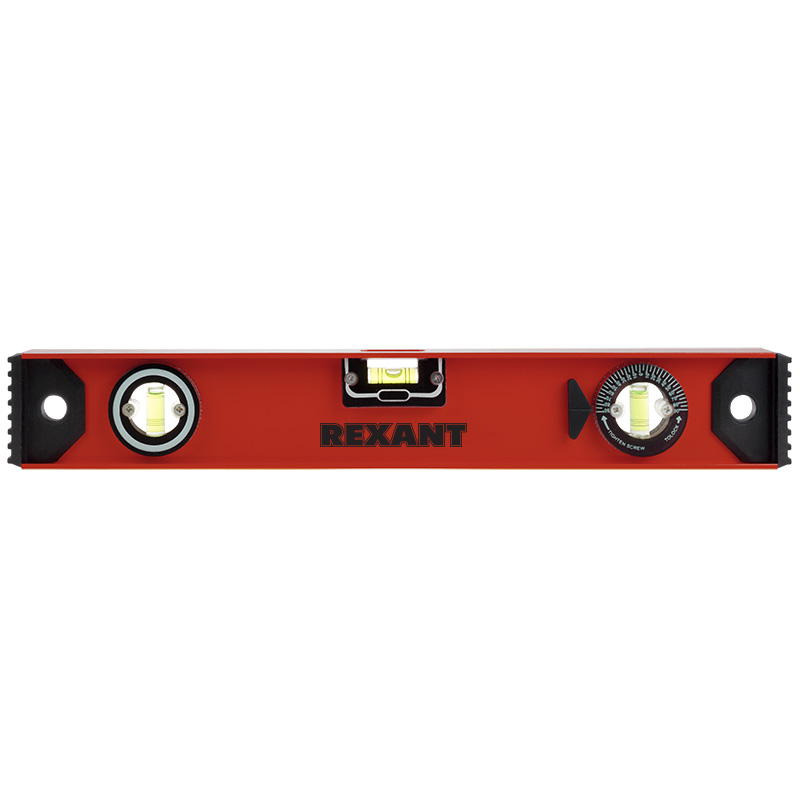 Модель оснащена тремя пузырьковыми глазками для проверки отклонений по горизонтали и вертикали. Один из глазков – поворотный, что позволяет использовать уровень для выставления произвольных углов.