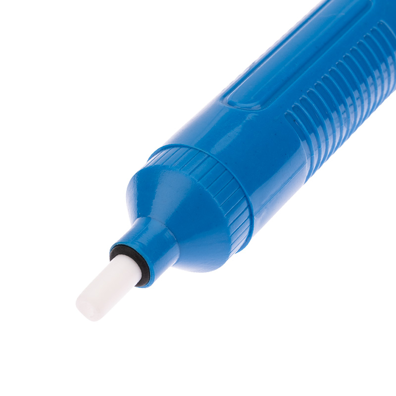 Корпус изготавливается из антистатического пластика и легко разбирается для обслуживания (смазка и очистка). Забор припоя производится посредством антистатического наконечника (диаметр 3.2 мм), который выполнен из высокотемпературного тефлона.
