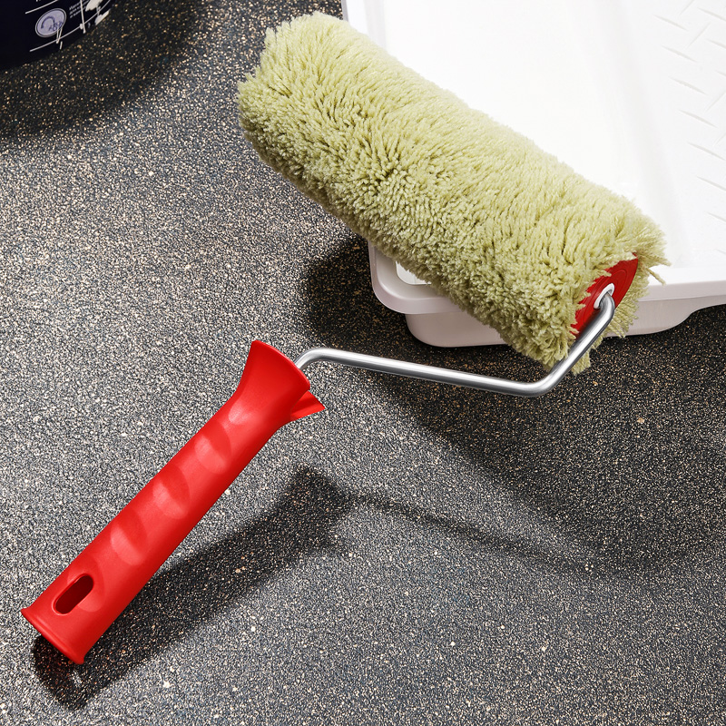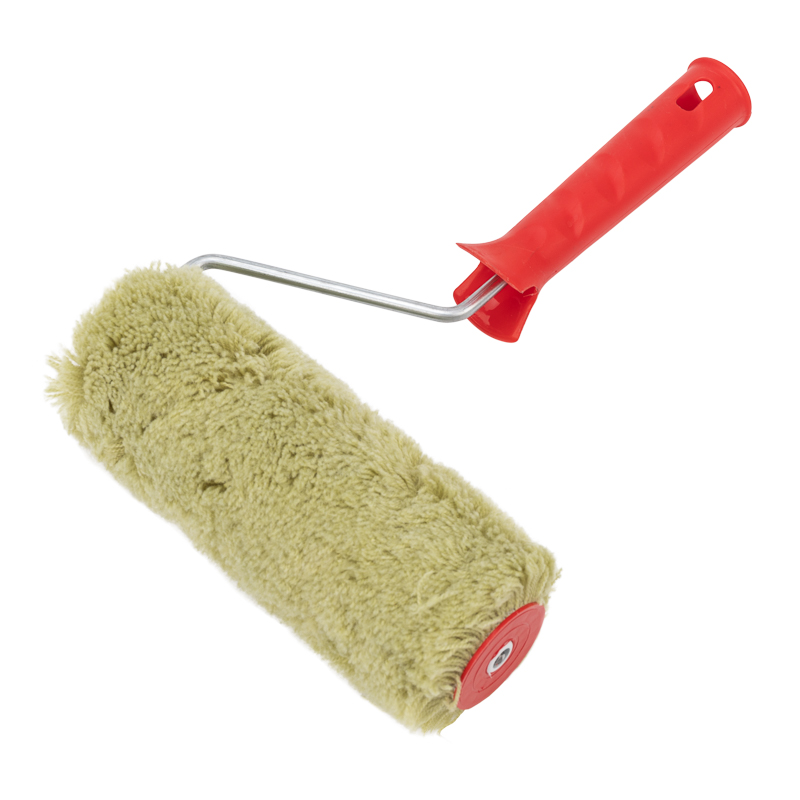 Валик состоит из пластмассового цилиндра, мягкой шубки, бугеля (изогнутого металлического стержня) и удобной пластиковой рукоятки.