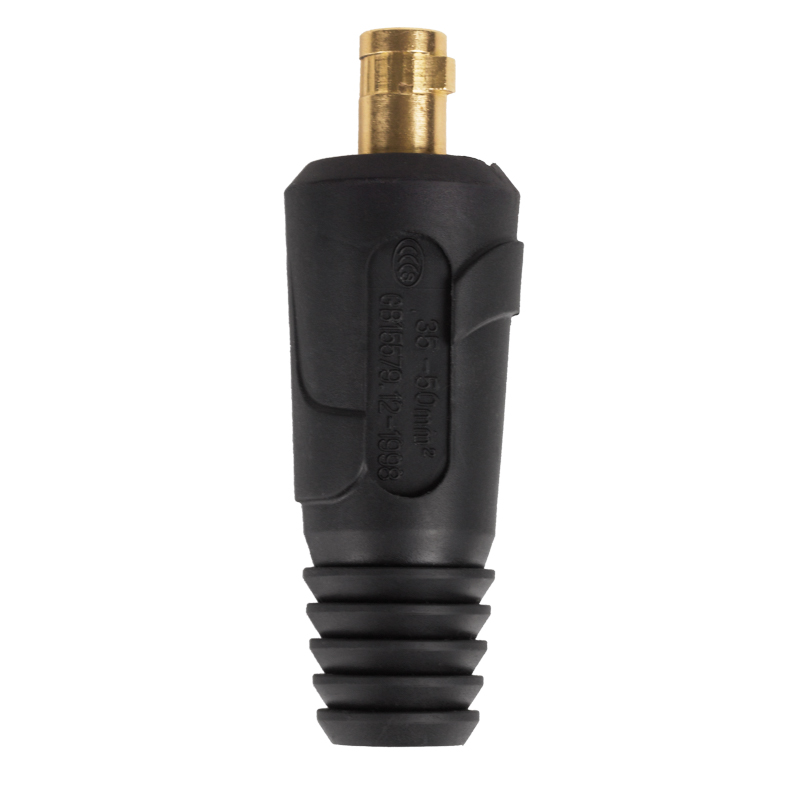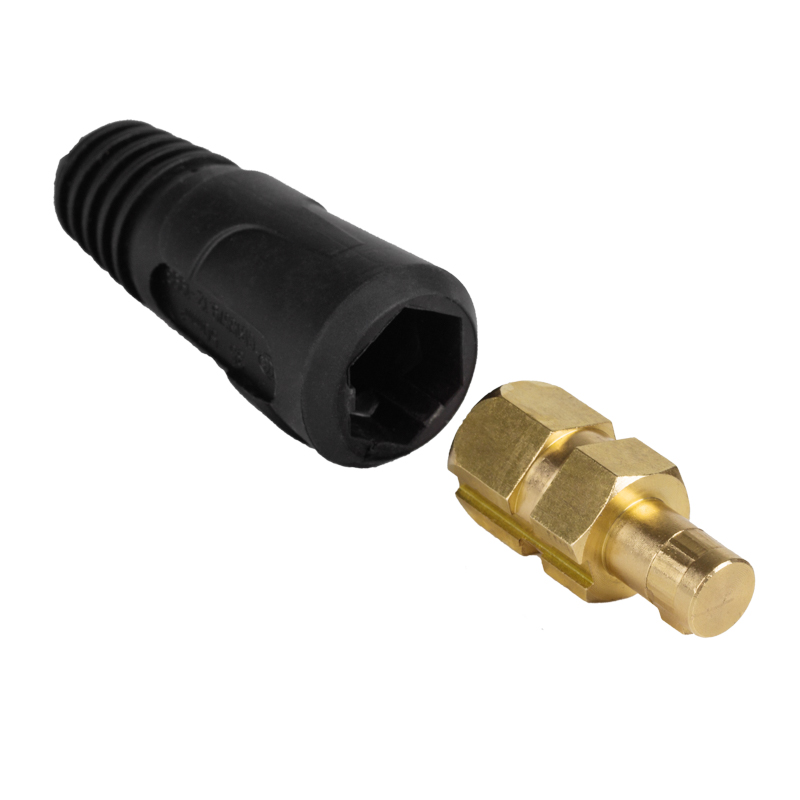 Вилка кабельная REXANT – быстросъемный соединительный разъем (штекер), который монтируется на кабель сварочных аксессуаров (держатель электрода на проводе или зажим массы) для последующего простого и надежного соединения к корпусу сварочного аппарата, при наличии на нем соответствующего разъема или с кабелем с целью общего увеличения длины кабеля.