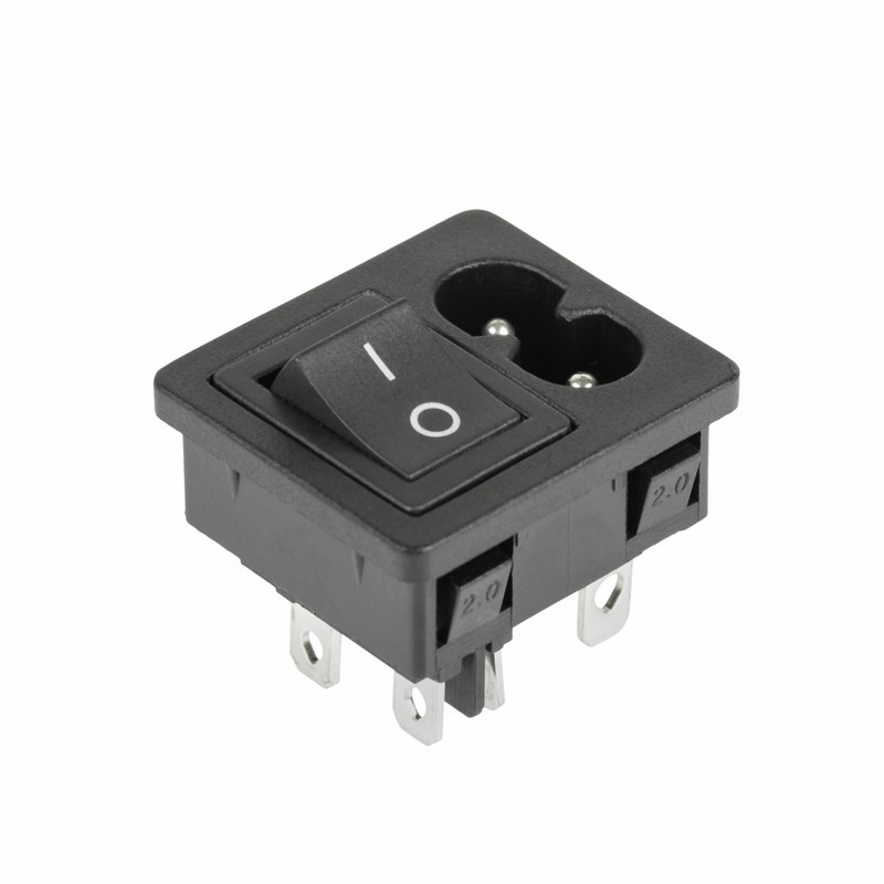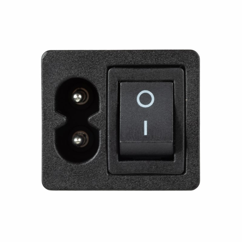 Выключатель клавишный 250 V 6 А (4с) ON-OFF черный с штекером C8 2PIN предназначен для коммутации электрических цепей переменного тока напряжением до 250 В. Комбинация выключателя с разъемом питания C8 применяется в качестве комплектующих изделий различного электрооборудования (бытовой техники).