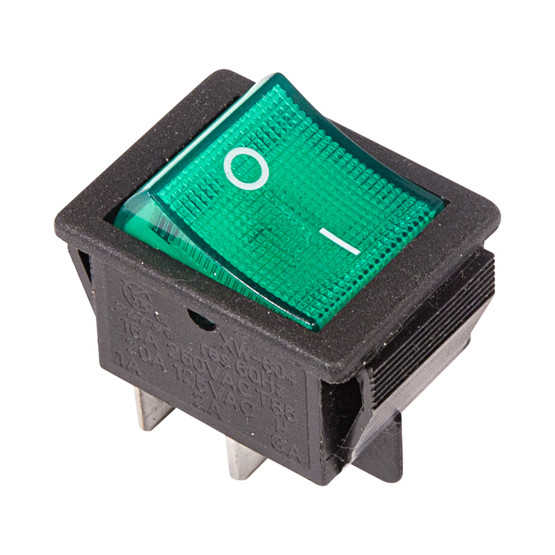 Выключатель клавишный 250В 16А (4с) ON-OFF зеленый с подсветкой (1 шт/уп) REXANT