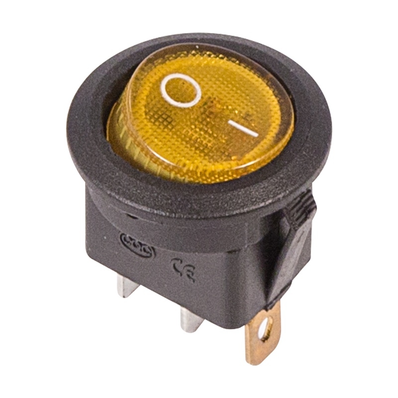 Выключатель клавишный круглый 250В 6А (3с) ON-OFF желтый с подсветкой REXANT