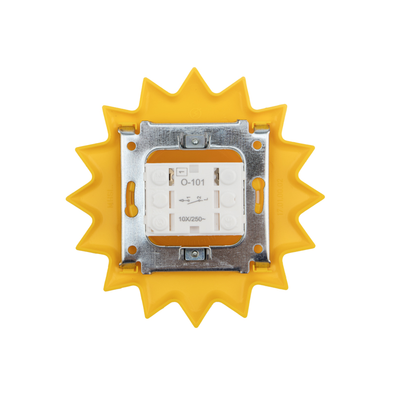 Одноклавишный выключатель серии HAPPY предназначен для организации электроснабжения внутри помещения. Яркий выключатель, выполненный в виде солнца, прекрасно подойдет для скрытой установки в детской комнате.