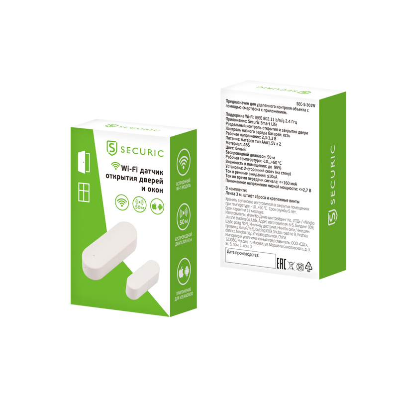Датчик реагирует на открытие дверей и окон и работает от сети Wi-Fi. Прибор срабатывает мгновенно и отправляет PUSH-уведомление на смартфон, благодаря чему в случае несанкционированного проникновения пользователь сможет вовремя принять меры безопасности и обеспечить защиту своего жилья.