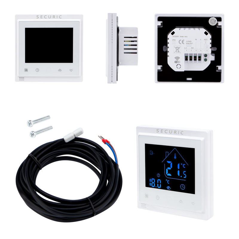 Сенсорный терморегулятор представляет собой высокотехнологичное устройство, предназначенное для автоматического поддержания комфортной температуры в помещениях различного типа. Прибор позволяет оптимизировать расходы на электроэнергию при эксплуатации тёплого пола. Благодаря этому компактному устройству, пользователь имеет возможность дистанционно, с помощью приложения, отслеживать температуру в помещении и регулировать ее при необходимости. Также прибор может автоматически выставлять температурный режим в зависимости от времени суток, дня недели, влажности воздуха и т.д. Устройство оснащено дисплеем, на котором отображаются время, температура воздуха и текущие состояние отопительной системы.