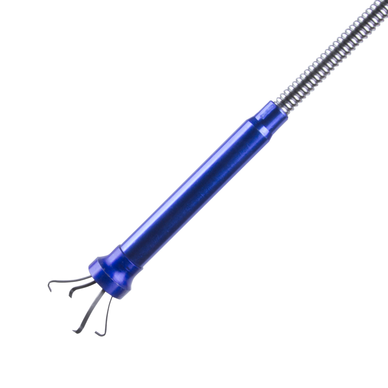 Благодаря магнитному наконечнику можно легко достать предметы из металла. Для деталей из других материалов предусмотрен цанговый зажим с 4 лапками.