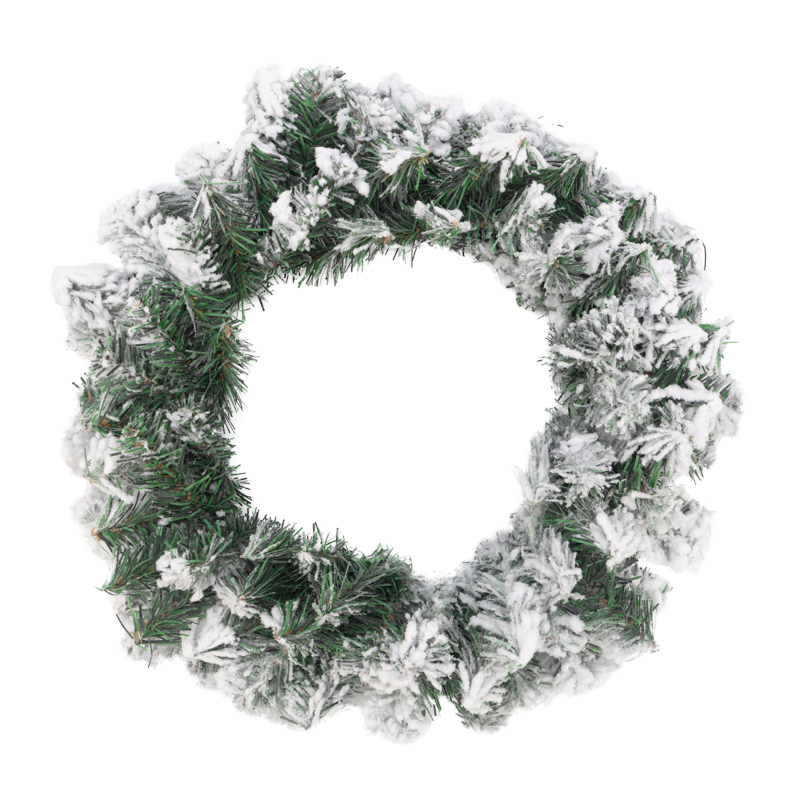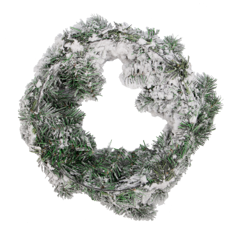 Заснеженный еловый венок диаметром 45 см — классическое интерьерное и экстерьерное украшение, выполненное из поливинилхлоридной пленки. Имитация легкого инея, покрывающего хвойные ветки с мягкими иголками, усиливает эффект реалистичности. Допускается использование не только дома, но и на улице. Еловый венок станет эффектным украшением входной двери, которое поможет почувствовать атмосферу праздника, царящую в вашем доме, прямо с порога.