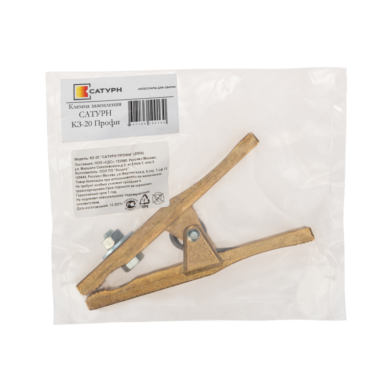 Зажим «крокодил» 200 А 140 мм для сварки (латунь) САТУРН Профи РОССИЯ