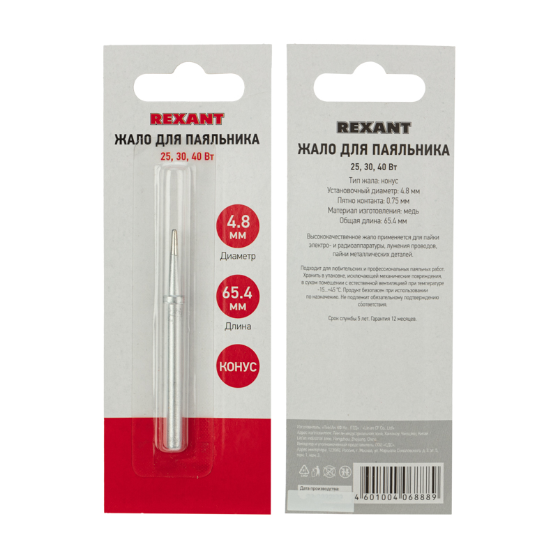 Жало для паяльников мощностью 25, 30 и 40 Вт REXANT представляет собой долговечное жало, состоящее из медного сердечника, покрытого слоем электролитически осажденного железа. Рабочая часть жала электрохимически покрыта слоем олова (что обеспечивает облуживаемость), а остальная поверхность — хромирована.