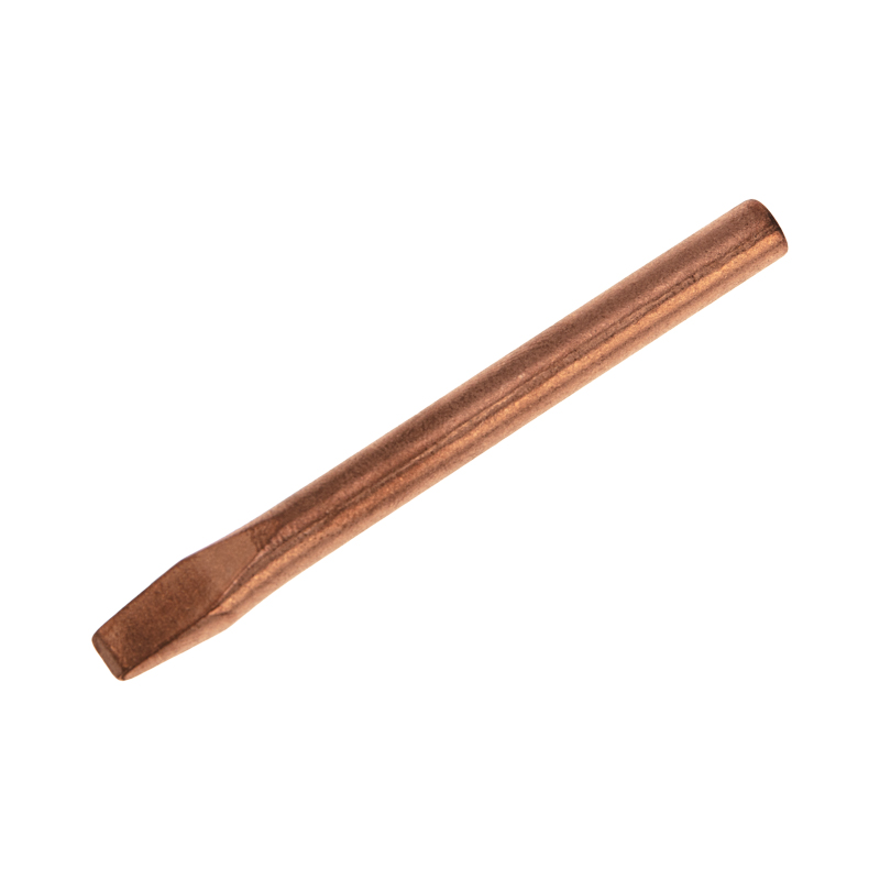 Жало медное представляет собой цилиндрический стержень, имеющий с одного конца один из множества типов форм. Медь — это идеальный материал для изготовления паяльного жала с точки зрения теплопроводности. Кроме этого, медное жало имеет отличную теплоемкость. Подавляющее большинство паяльников комплектуются именно такими наконечниками.