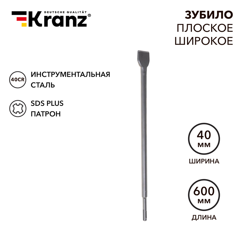 Зубило выполнено из сверхпрочной инструментальной стали, легированной хромом и молибденом (40Cr), благодаря чему имеет долгий срок службы. Изготовлено методом ковки, что повышает прочность и устойчивость оснастки к механическим воздействиям, а также минимизирует количество дефектов материала. Оптимальная заточка лопатки гарантирует высокую производительность и качество выполнения работы. Увеличенная рабочая часть легко справляется с обработкой широких поверхностей. Зубило имеет улучшенную форму для эффективного отвода пыли и мусора. Хвостовик стандарта SDS-plus диаметром 14 мм быстро и надежно крепится в легких строительных перфораторах с соответствующим патроном. Используется в ударном режиме.